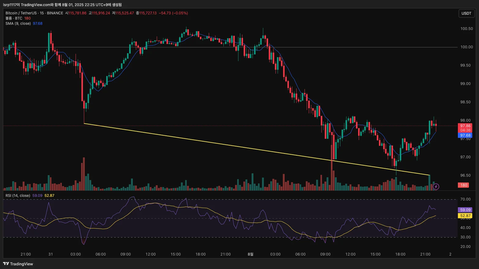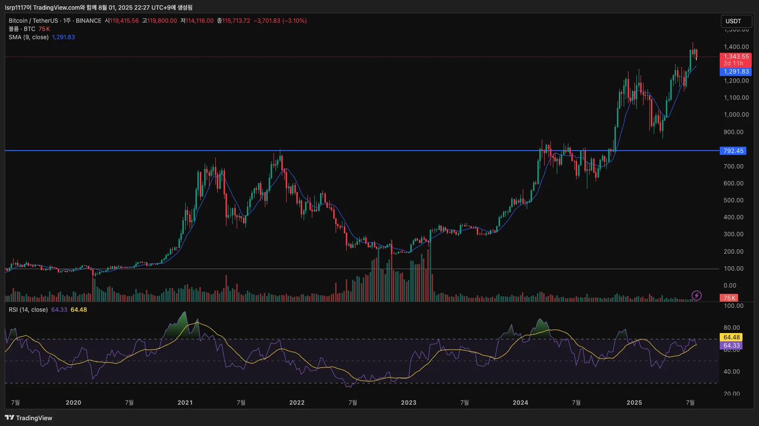 [30일 챌린지 36기 1주차] 비트코인 지지선 저항선 작도해보기