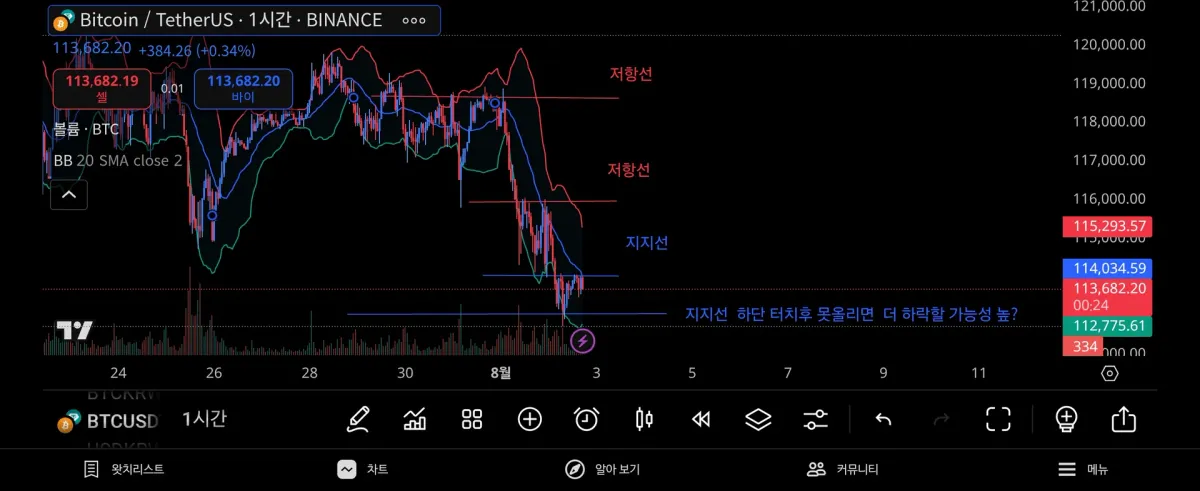 1일봉 으로 보면 단기 조정으로 110k 까지 빠질 가능성도 있어보입니다.