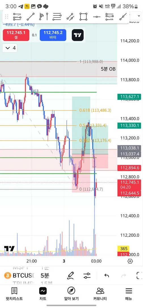 오더블럭에 닿아 예쁘게 가격거부반응이 나왔고 거래량까지 터져줘서 롱 받아봤습니다만 반익절하고 본전으로 스탑로스 올렸더니 거래량이 다시 터지며 본절로스 났습니다.