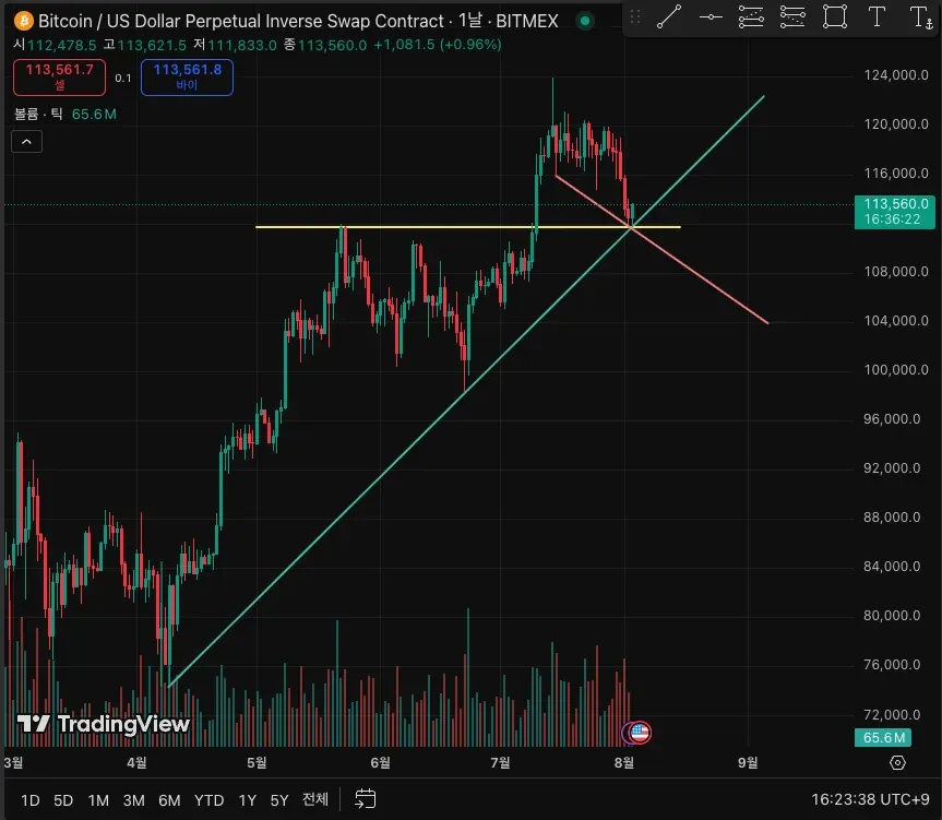 4월부터 계속 이어지는 상승 추세선에 따라 아직은 상승 추세가 유지될 것으로 보입니다.