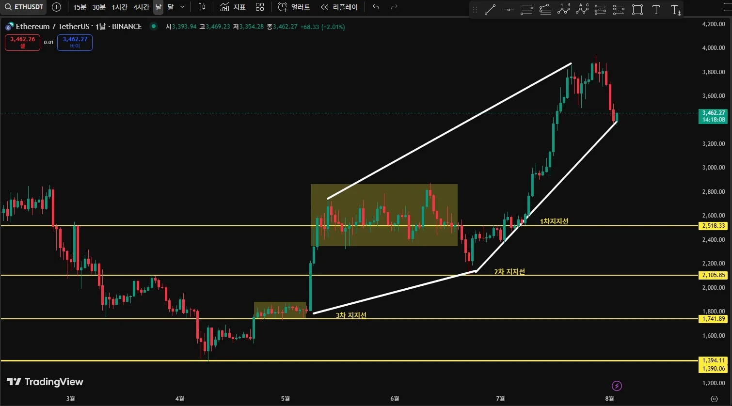 비트코인 "날"을 기준으로 지지 저항과 추세선 작도해 보았고, 작도 중에 박스구간이 보여 함께 표시해 보았습니다.