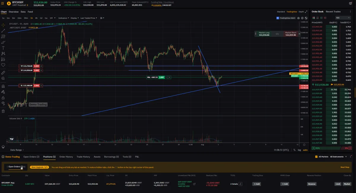 -1시간봉 기준으로 작도한 작은 하락추세선 돌파