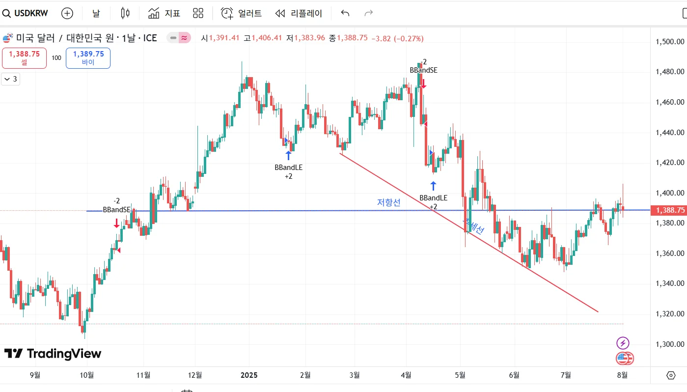 하향 추세선에 저항 지지선에 걸려 있는 느낌 입니다.