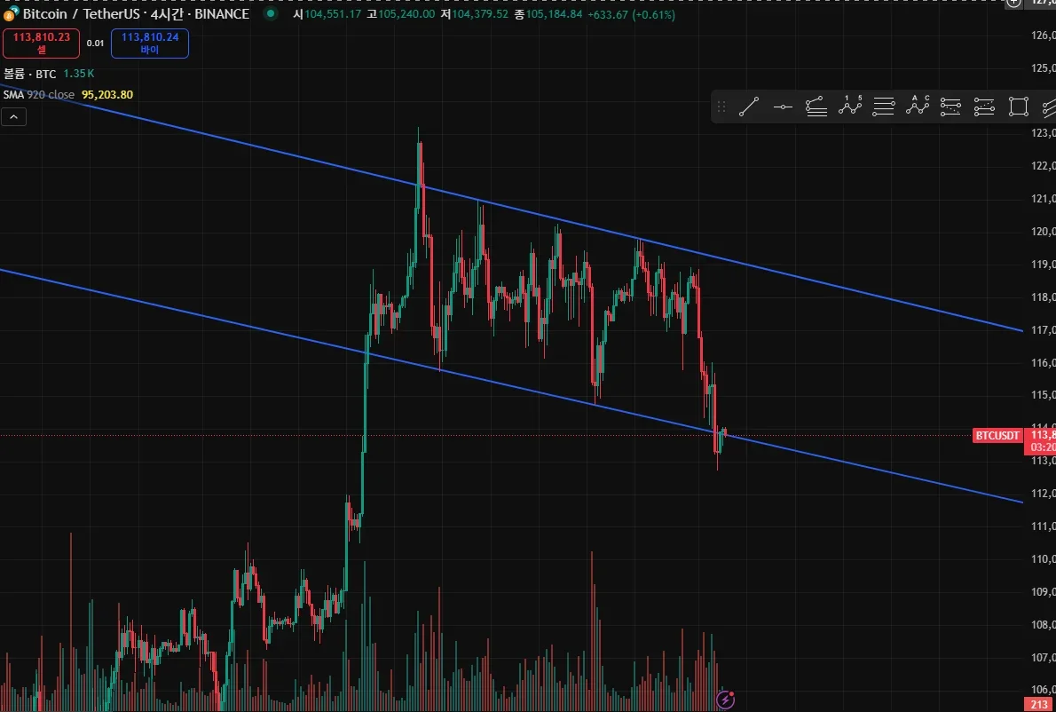 캔들이 위아래로 변동폭이 크게 움직이는데 크게 보면(4시간봉,하루봉) 계속 하락하고 있어요