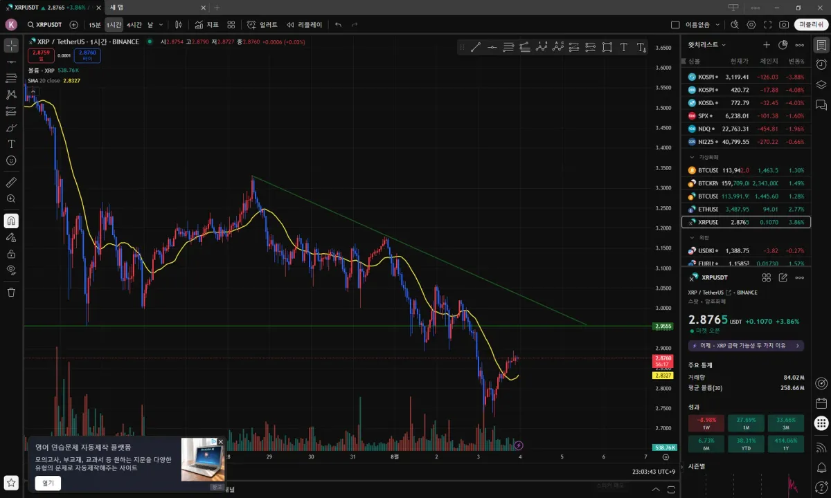 어 일단 하락추세선같은데..