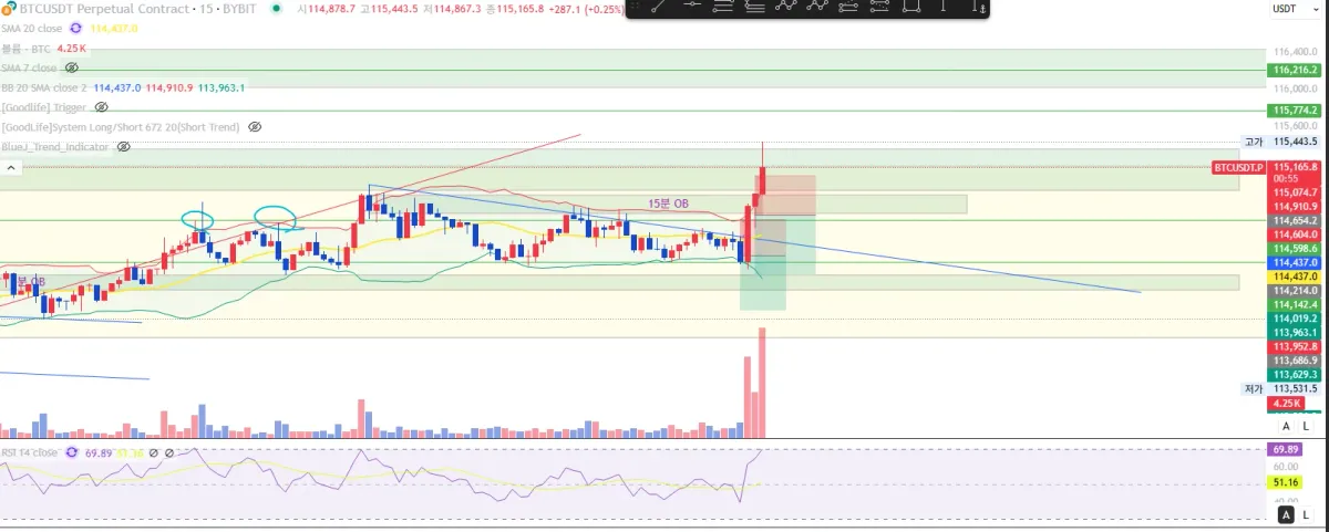 -15분 OB(114671.4 부근 저항반응) 확인 후 진입