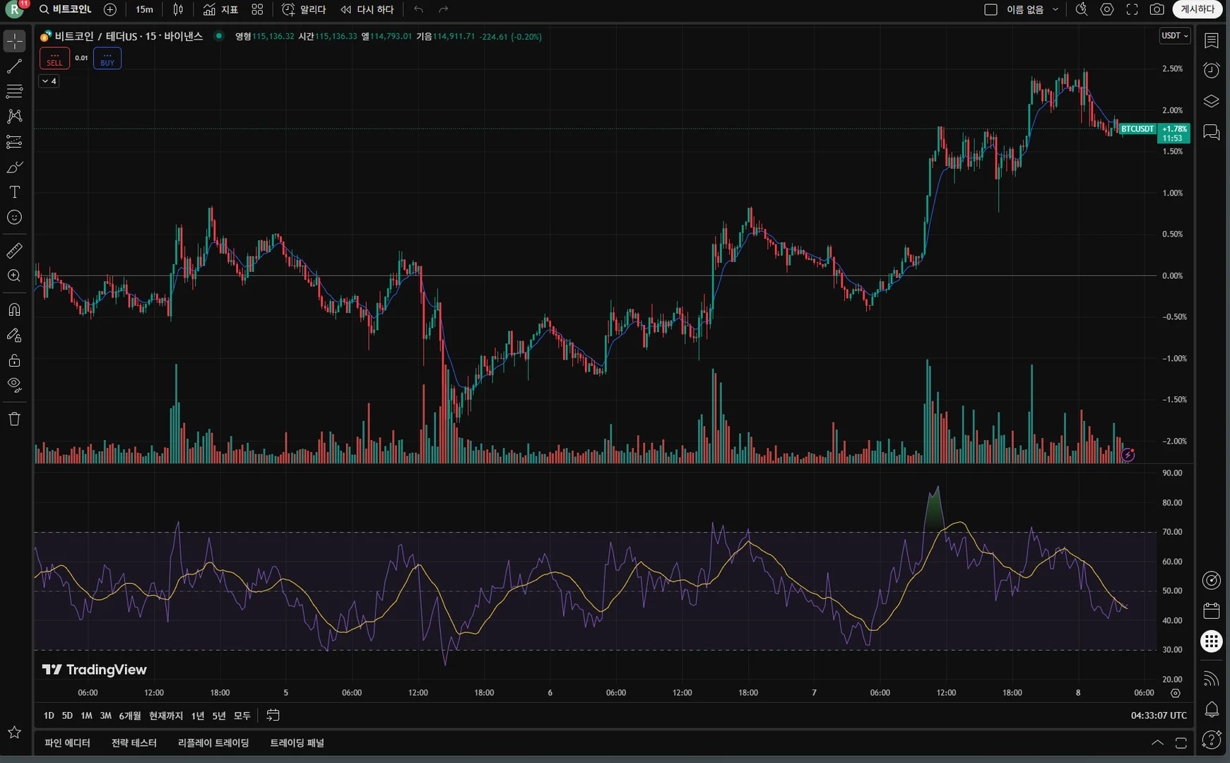 36기 2주차 미션 RSI 지표추가 및 강의를 듣고 매매일지 올립니다