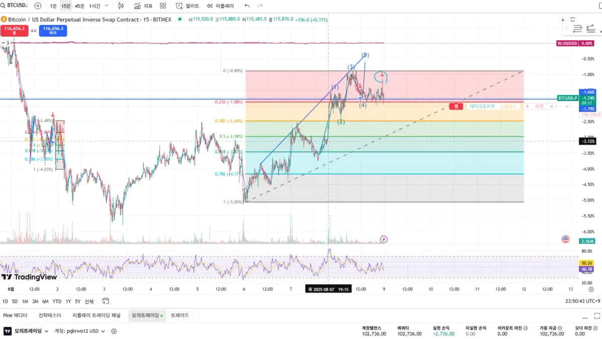 챌린지 36기 2주차 (모의 트레이딩)피보나치와 지지선 저항선, 엘리어트 파동 사용