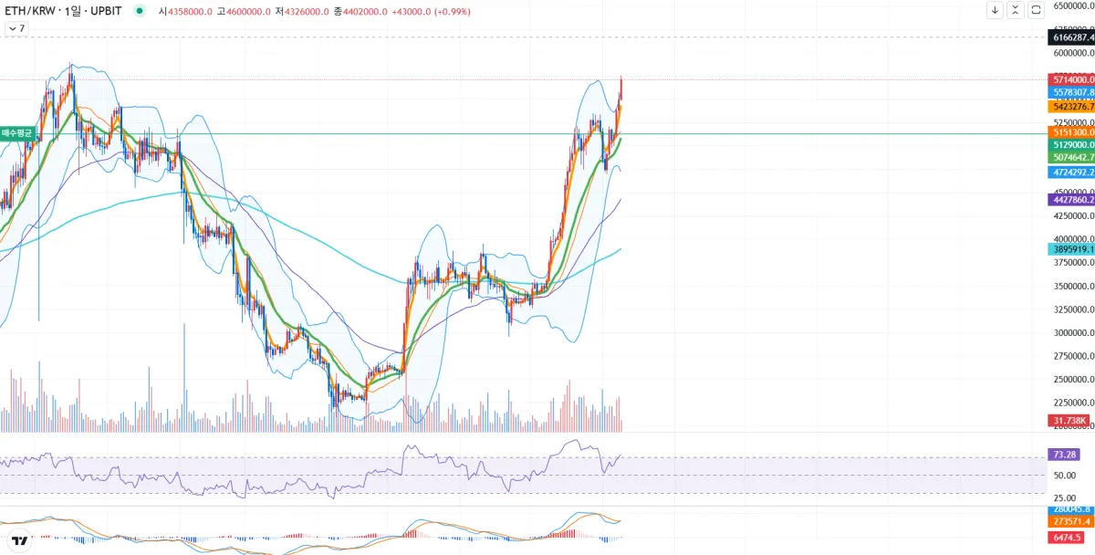 앞으로 상승할 수 있는 여력이 더 보인다고 생각합니다. 하지만 RSI를 보면 과매수 구간에 진입하였기에 이 부분이 조금은 걸리는 것 같습니다.