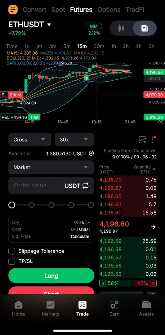 이미 상승분이 어느정도 있어서 반익반본보다는 해당 갭이 다 매꿔지는 3970에 스탑로스 설정하여 스탑로스 발생시에도 진입가가 유리하여 수익은 챙길수있다고 판단하였으며,