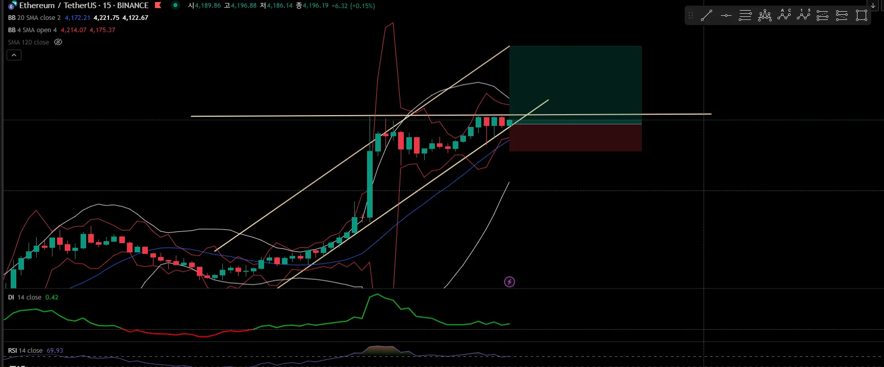 - 어센딩 트라이앵글 패턴으로 보임