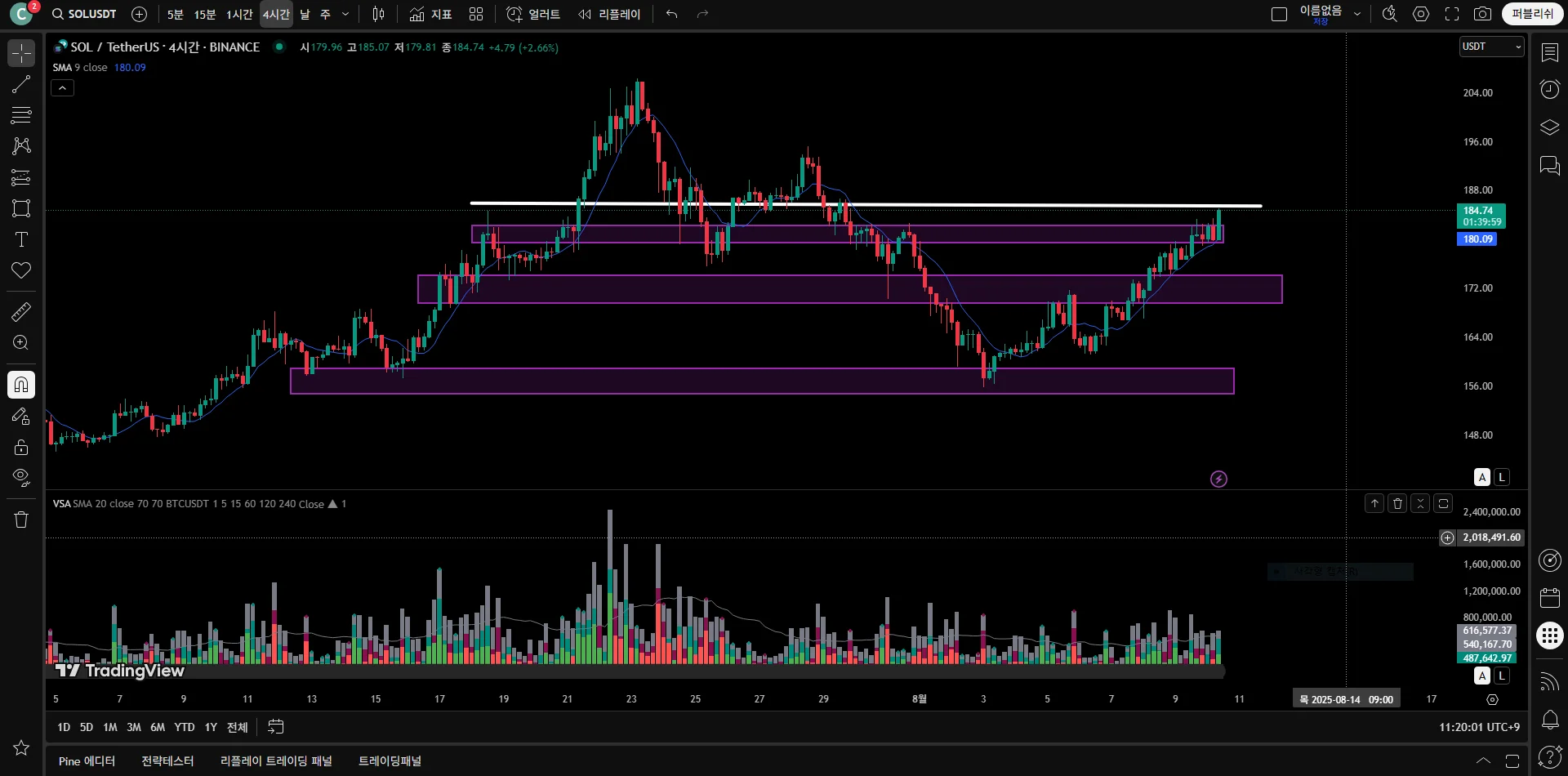 181달러는 과거 여러 차례 저항을 받은 구간이었지만, 이번에는 거래량이 줄지 않고 유지되었고, 바로 아래에 지지선이 있어 손절 폭이 짧았다.