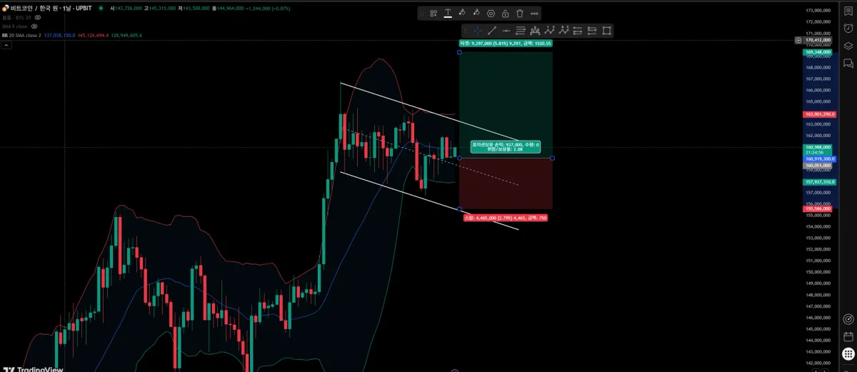 고점과 저점의 반복이 칸 안에서 이루어 지는 것을 보니 플래그 패턴으로 보임.