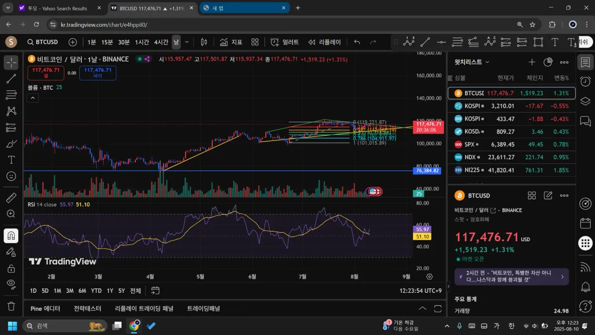 저는 2025년 5월 중순 비트코인의 RSI 지수를 보았습니다. 그 결과RSI 지수가 70이상으로 상승하였을 때 비트코인의 가격이 하락하는 모습을 발견할 수 있었습니다.