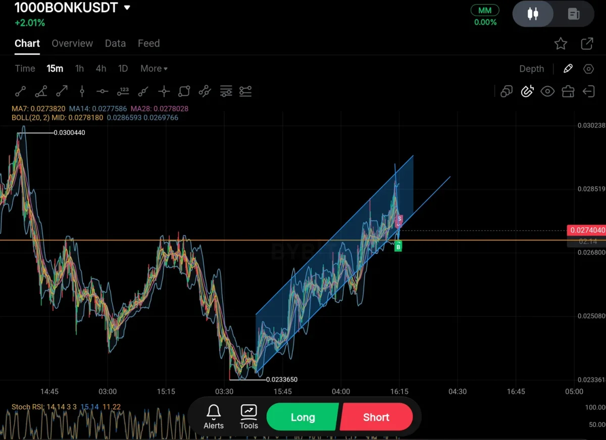 비트코인으로 하려고 했으나 진입 타점이 안 나(이더,솔라나도 동일) , 그나마 거래금액이 큰(시장 참여자가 많아 차트가 들어맞을 확률이 높다고 판단) 봉크로 거래했습니다