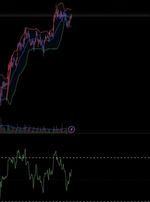 볼린저 밴드 하단을 건드렸으나 위가 먼저 닫힐 것 예상