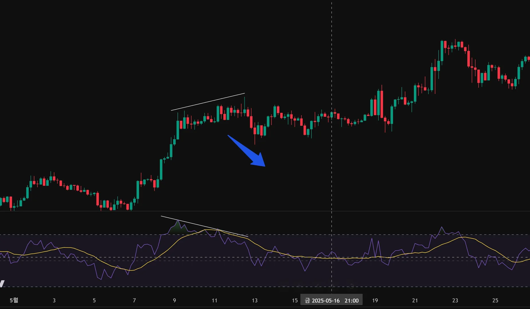 하락 다이버전스 관찰했습니다.