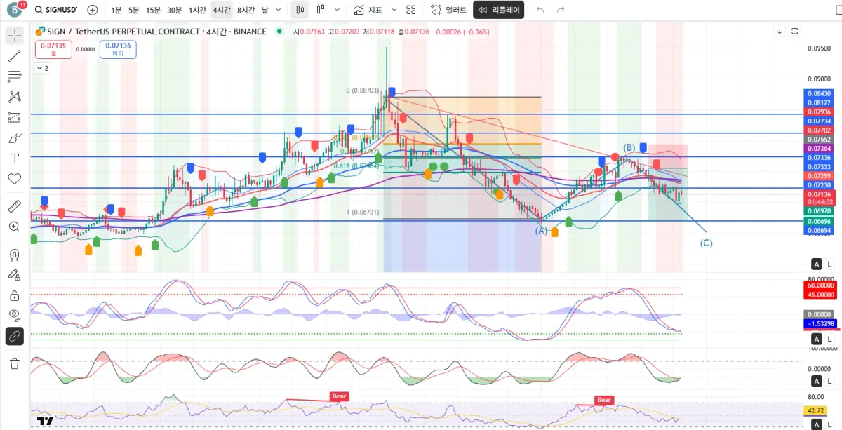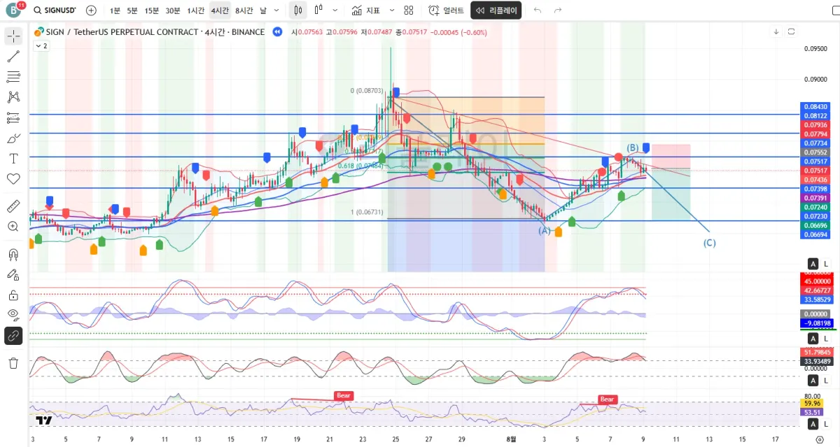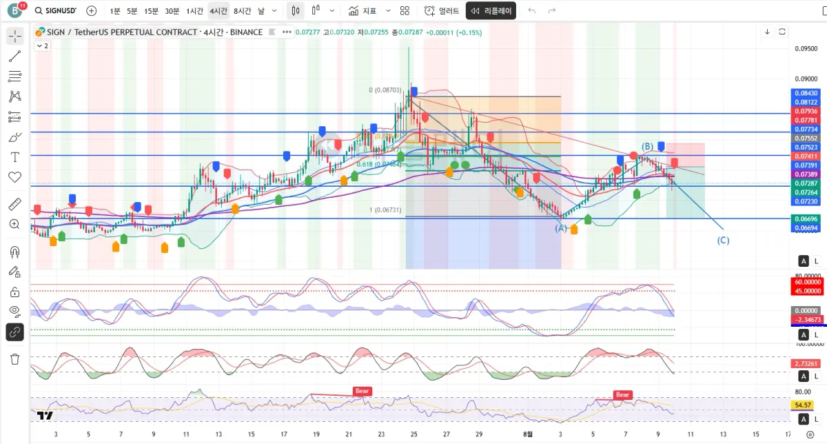 8/11 15시30분경 0.07136으로 하락이 계속 진행중임. 익절가까지 진행될것같은 예상이 들어 포지션을 일찍 정리한것이 후회됨.