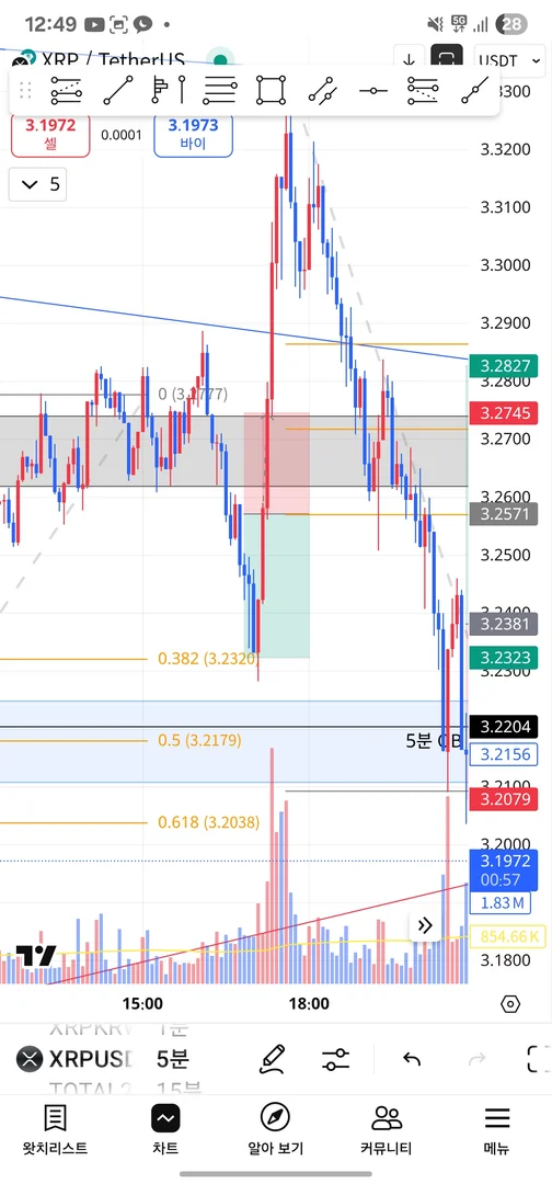 이전 포지션에서 방향은 맞았으나 손익비 문제로 손절나고 바로 추격숏 타서 익절했습니다.