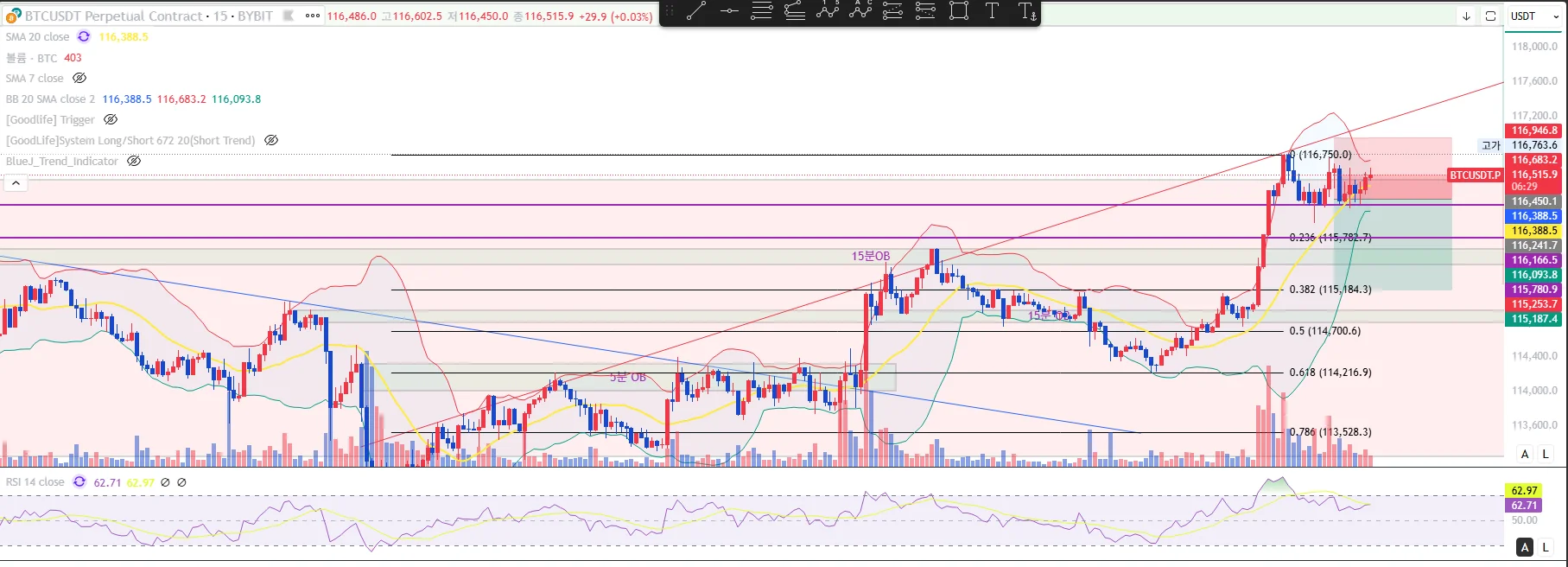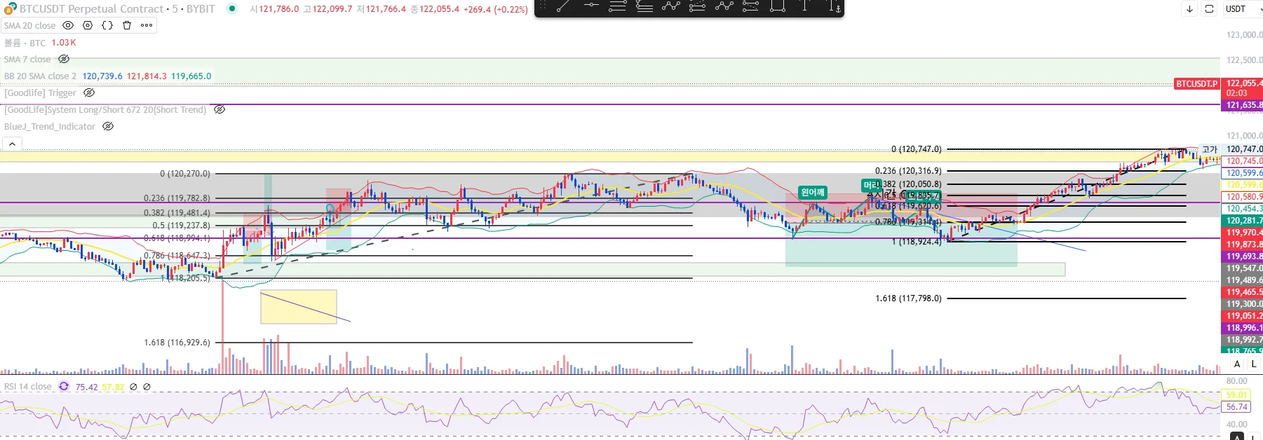 피보나치 1:1 자리 부근 OB까지 익절 라인