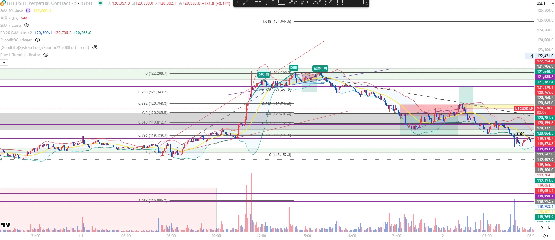 -피보나치 되돌림 0.5 구간에서 하락 중이라 아직 익절 기회가 있다고 판단