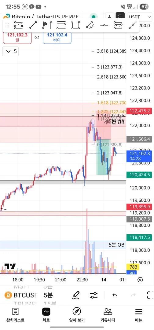 일단 오더블럭 저항도 겹쳐서 숏 봤고 손절선 1.272로 맞췄는데 운좋게 익절.