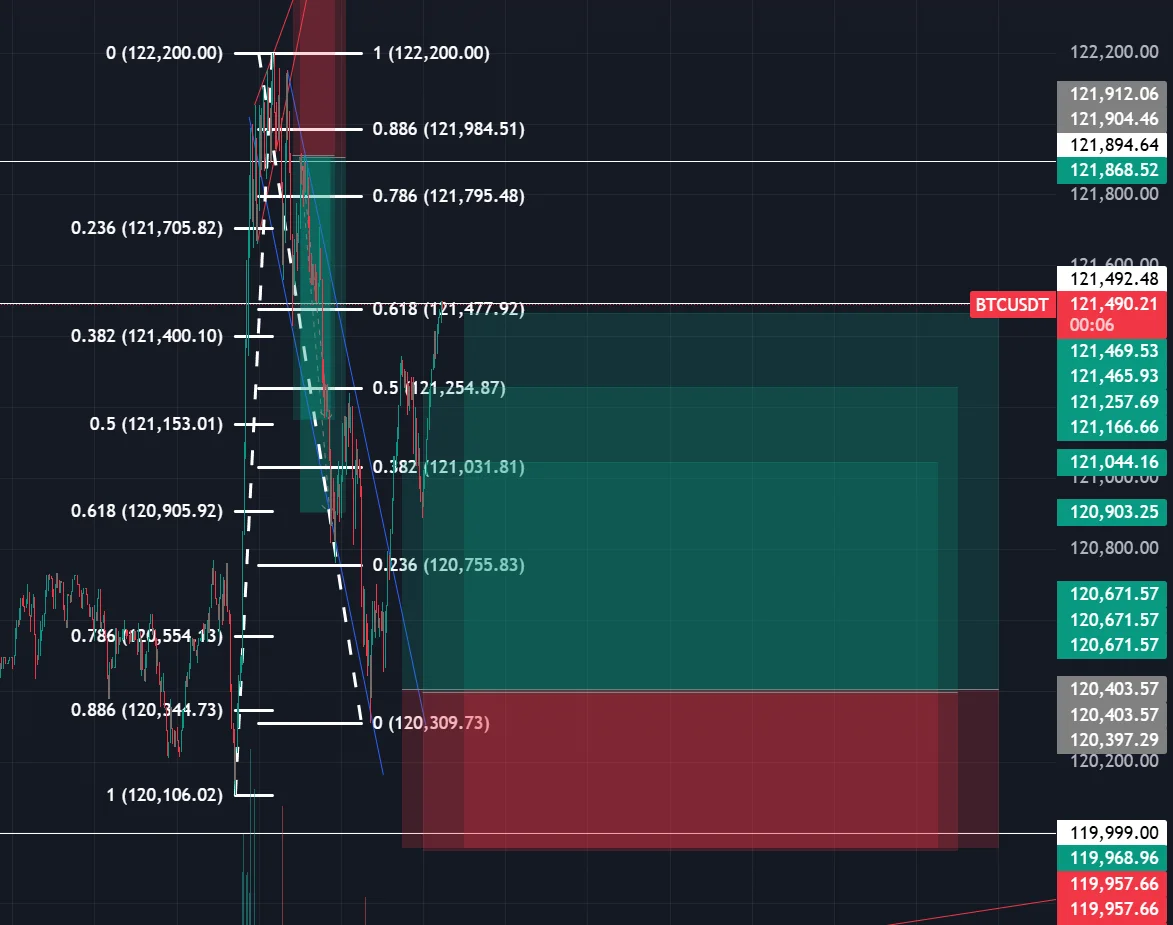 가파른 하락이였기에 0.382 0.5, 0.618 자리까지 보고 진입
