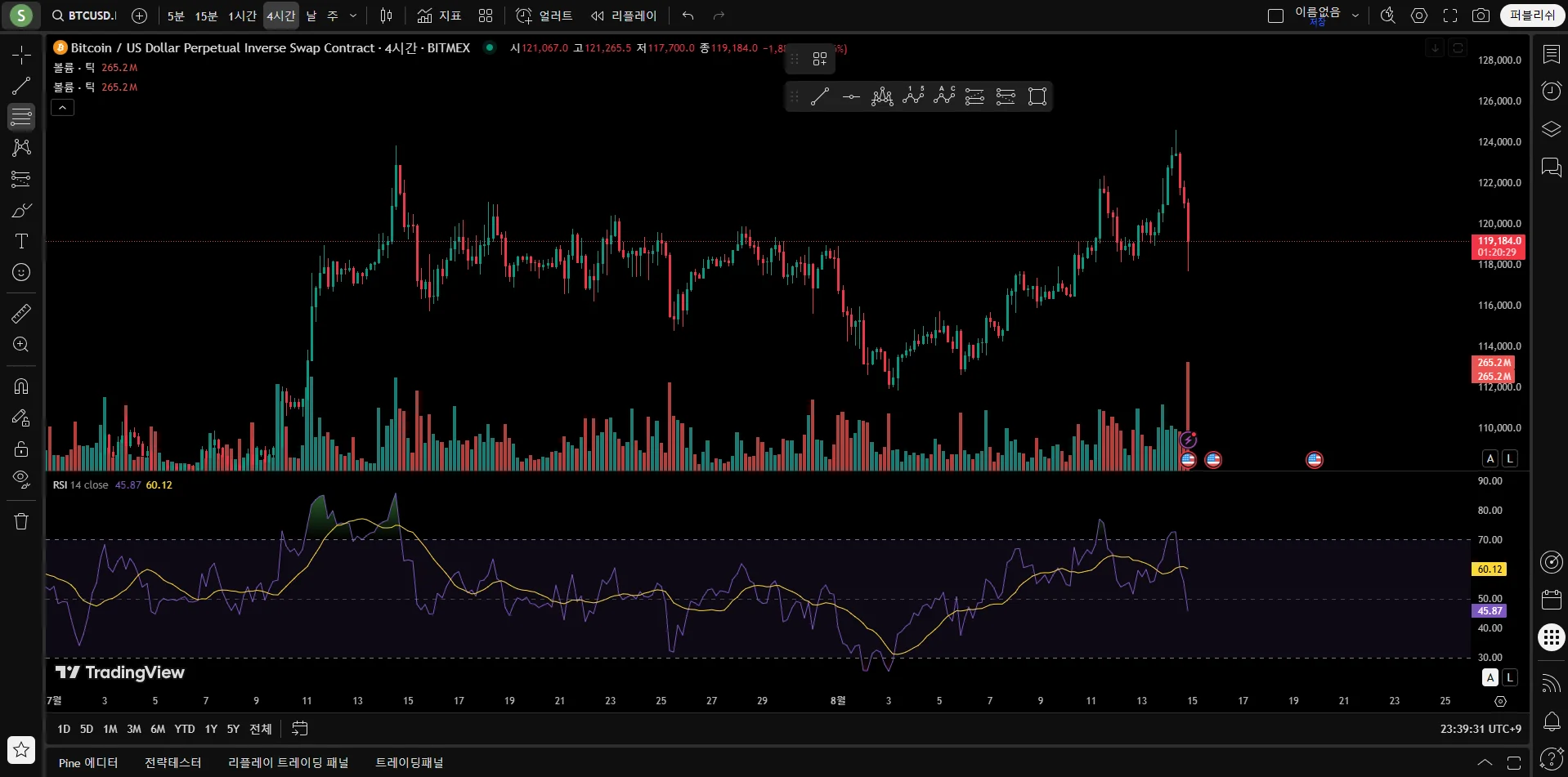 거래량 역시 항상 표시되는 것으로 설정해두었습니다.