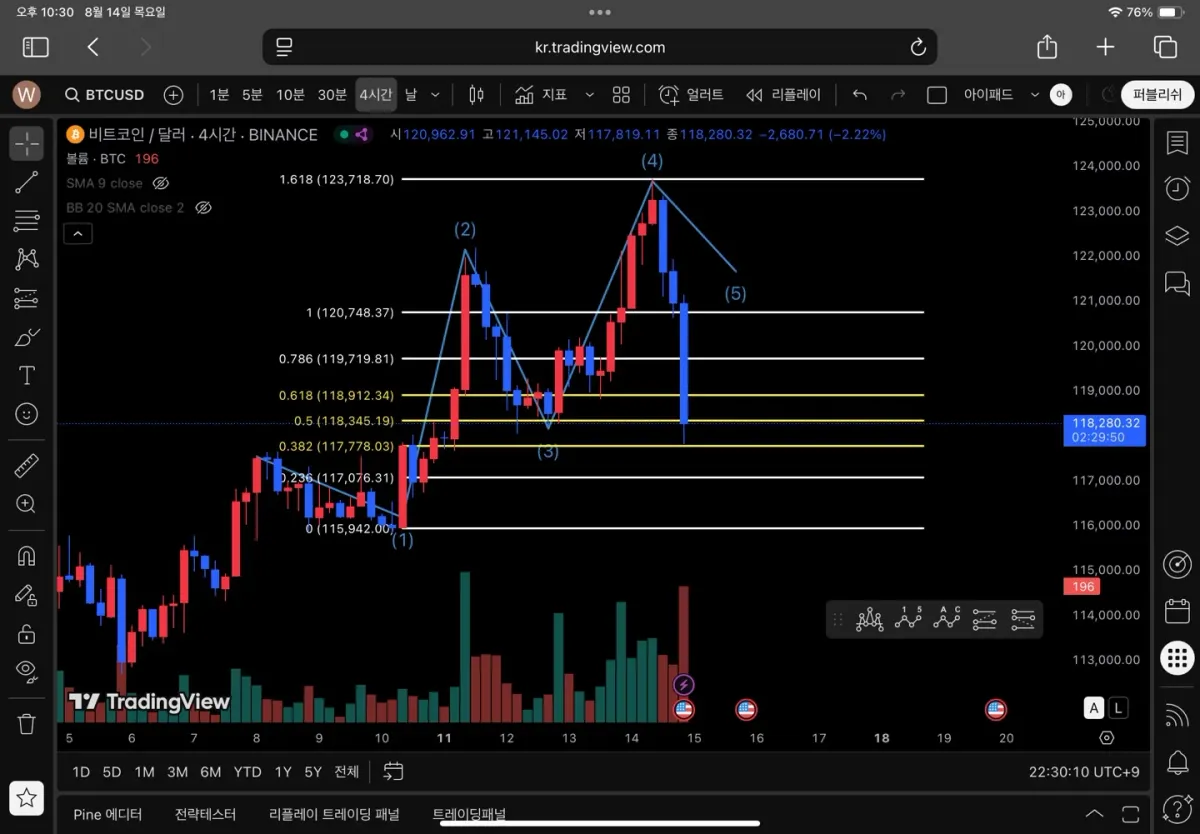 이것저것 만져도 보고 피보나치, 엘리엇임펄스웨이브 적용 시켜 봤는데 이렇게 하는 것이 맞는지는 모르겠지만 예측한대로 어느정도 흘러가는 것 같아요ㅋㅋ