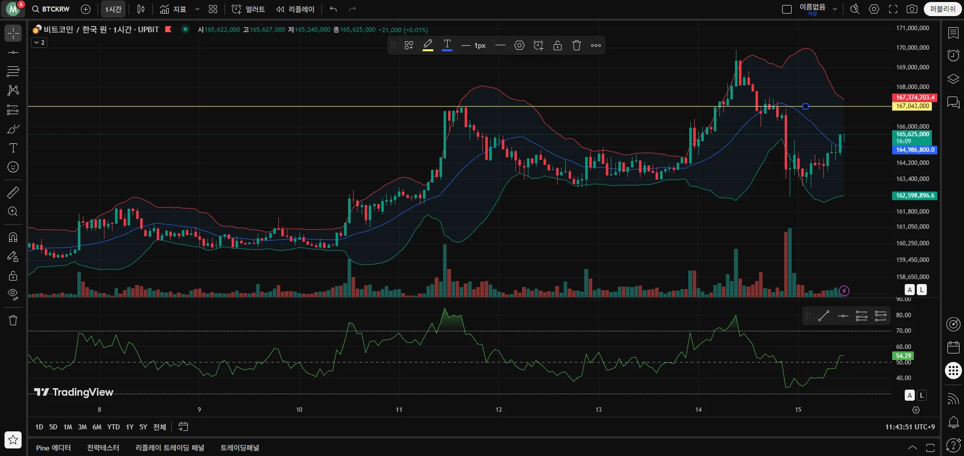 1시간봉에서 저항선 작도해보았습니다.