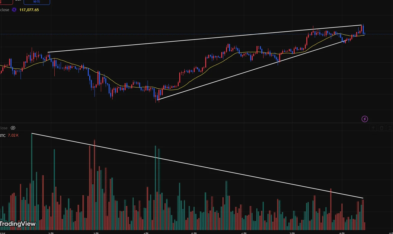 2. 저항선과 지지선이 점점 좁아지고 있는 상황.