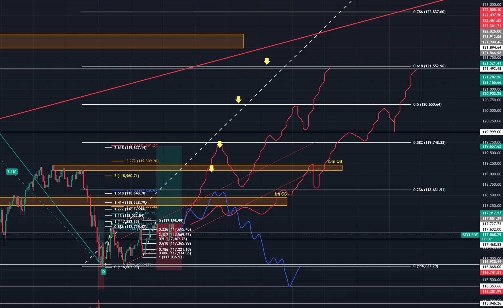 -저점 추세기반 찍어보니 2.618 지점이 0.382 부근에 닿아있음.
