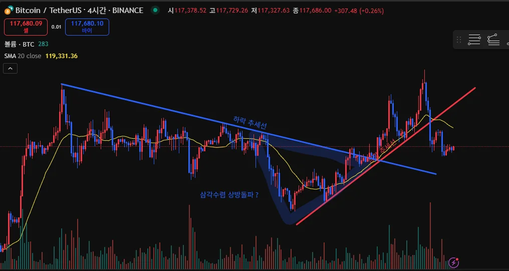 보조 강사님께서 진행하신 추세선 강의 중 삼각수렴 상방 돌파와 비슷한 것 같아 작도해보았는데 맞는지 모르겠습니다 ㅋㅋㅋ