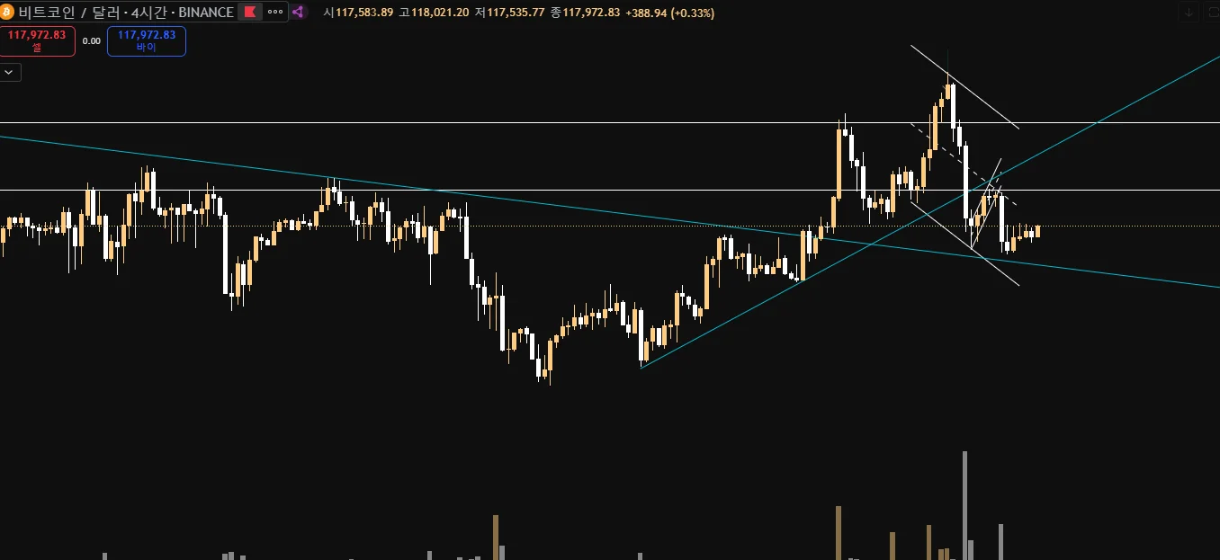 현재는 두 지지와 저항선 사이에서 횡보하는 것으로 보이네요.