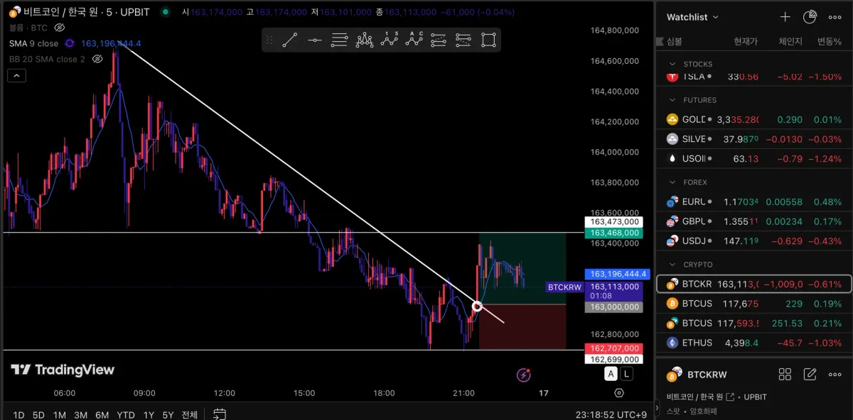 BTCKRW 오늘자 기준으로 작도해보았습니다.