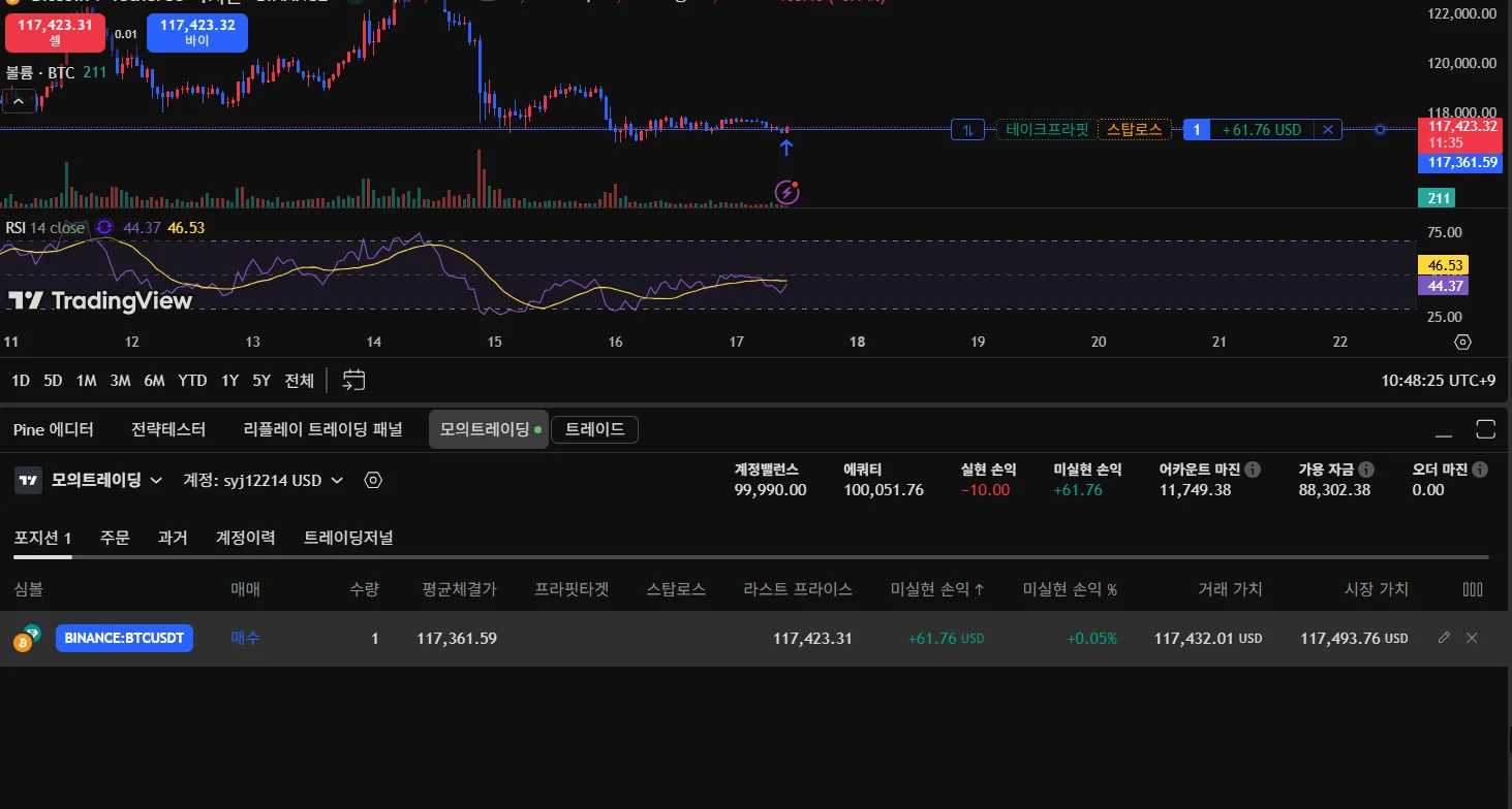 아직은 감을 잡지못해서 모의트레이딩으로 해보았습니다.