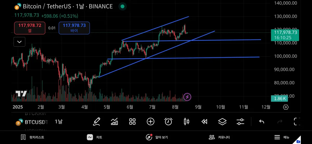 컴퓨터가 따로 없어서 폰으로 저항선 지지선 추세선 작도 해보았습니다
