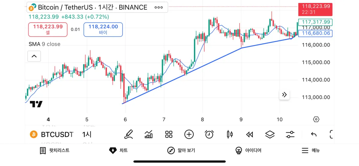 저점이 서서히 올라가는 것이 상승추세선인것같습니다