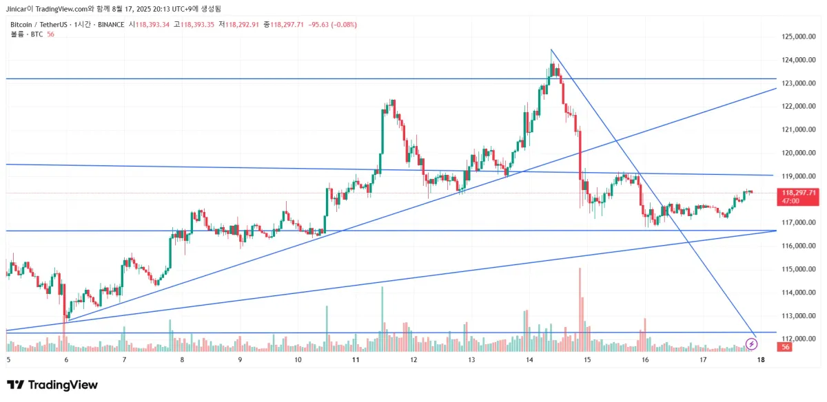 비트코인 1시간봉 차트입니다.