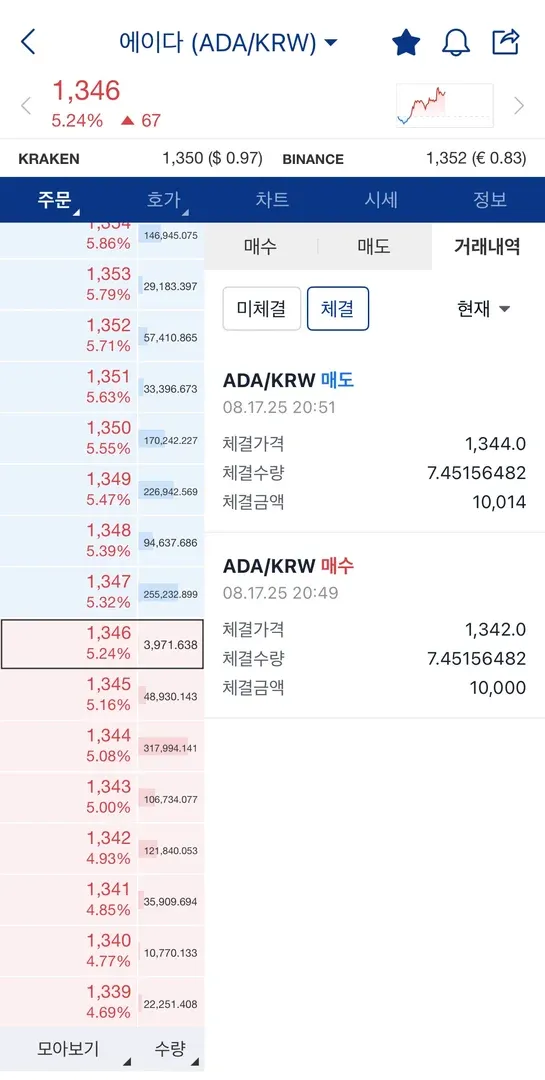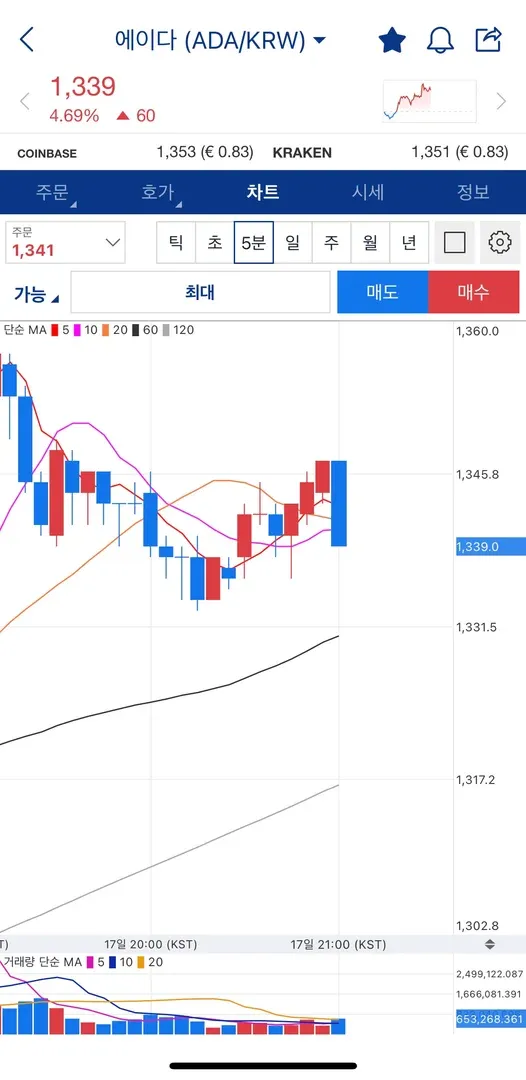 미보유 종목이던 에이다를 5분봉으로 매수/매매,
