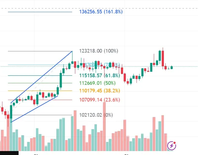 다음은 가장 최근의 BTCUDT에서 피보나치 되돌림에서 반등이 나온 것을 확인하였습니다.