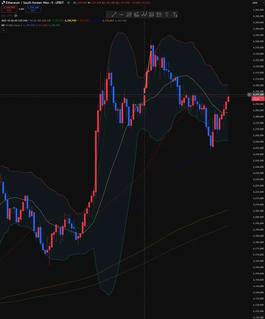 진입 근거는 볼린저 밴드 상단을 지지 받는다고 판단하고 진입하여 볼린저 밴드 돌파 후 하락할 때 매도 했습니다.