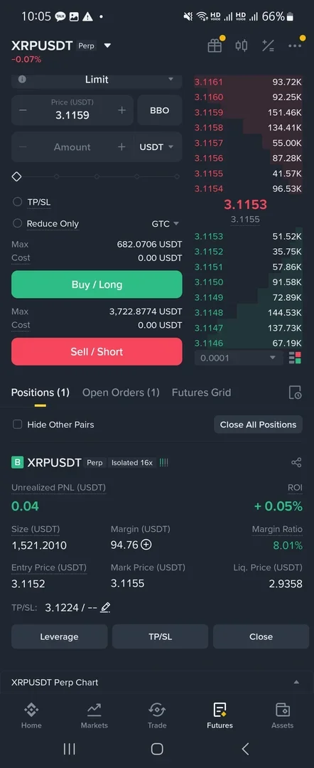 리플 15분봉마다 쭈욱 보니 볼린져하단에 터치하고도 올라가는 모습을 자주보여 여기가 저점이라 생각하여 롱을 진입하였고 3.1152에 잘 진입하였으나 하단까지 계속 터치 할 것같은 모습을보고 아주 작은 익절을 하고 털고 계속 차트를 지켜보니 3.1230까지 올라가는 모습을 보았습니다. 심리또한 중요하다는것을 깨닫는 매매였습니다.