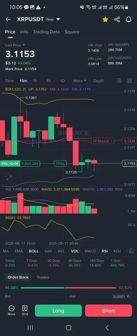리플 15분봉마다 쭈욱 보니 볼린져하단에 터치하고도 올라가는 모습을 자주보여 여기가 저점이라 생각하여 롱을 진입하였고 3.1152에 잘 진입하였으나 하단까지 계속 터치 할 것같은 모습을보고 아주 작은 익절을 하고 털고 계속 차트를 지켜보니 3.1230까지 올라가는 모습을 보았습니다. 심리또한 중요하다는것을 깨닫는 매매였습니다.