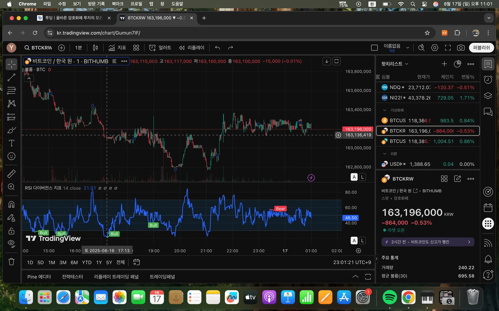 rsi와 볼린저 밴드를 사용해보았습니다!