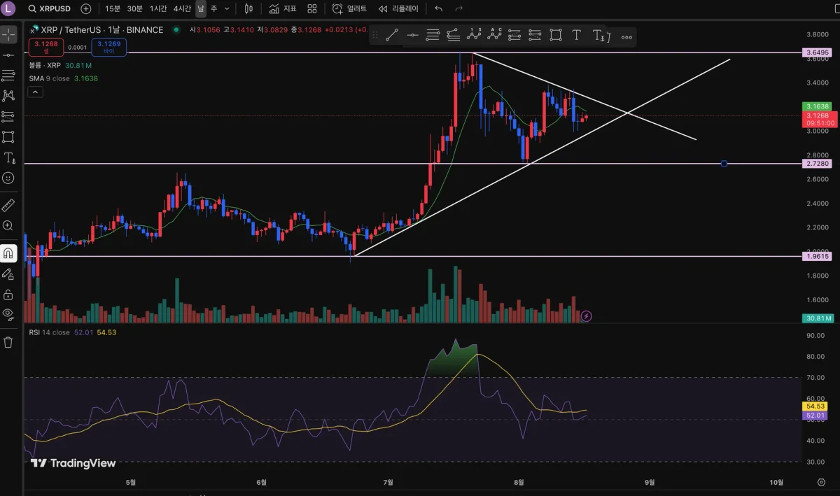 이게 맞는건진 잘 모르겠지만.. xrp에 관심있어 해당 차트로 실습해보았습니다.