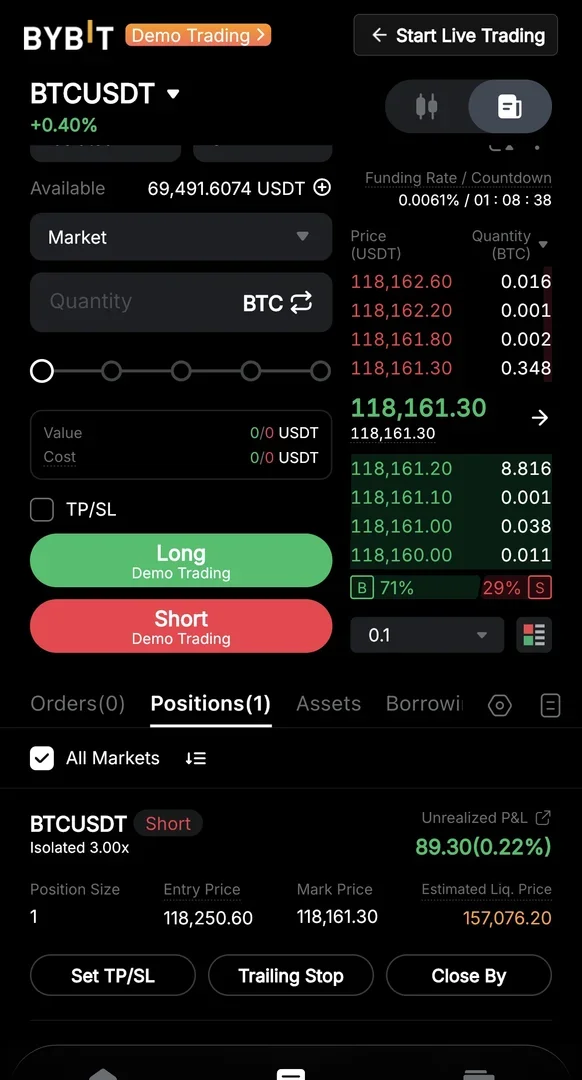 BTCUSDT로 진행했고, 아직 익절, 손절은 안 난 상태입니다