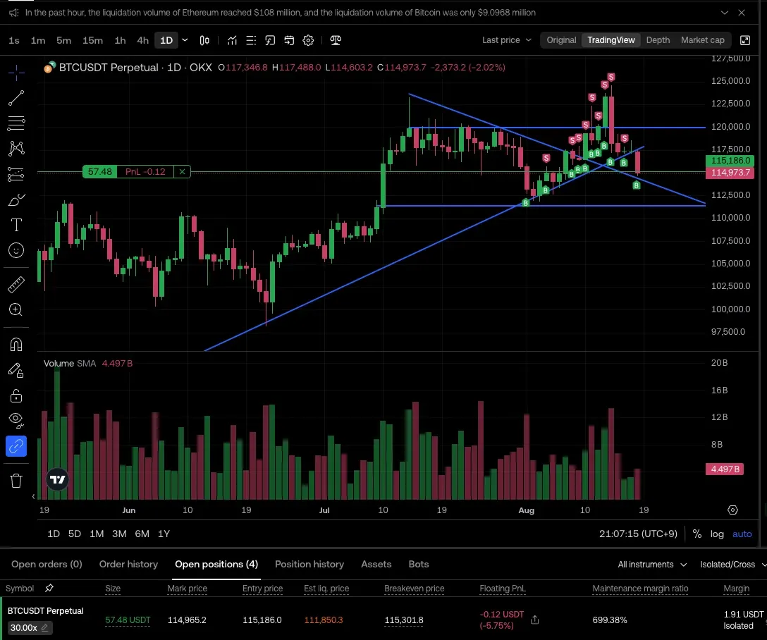 롱 포지션의 목표가는 하락 캔들의 고점 부분이고 손절가는 이전 상승 추세 전환의 양봉캔들 저점으로 잡았습니다.