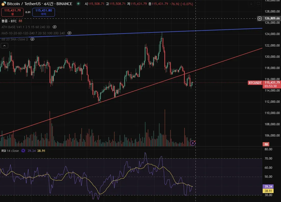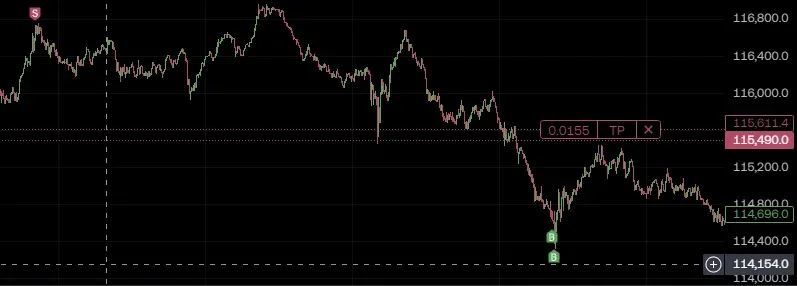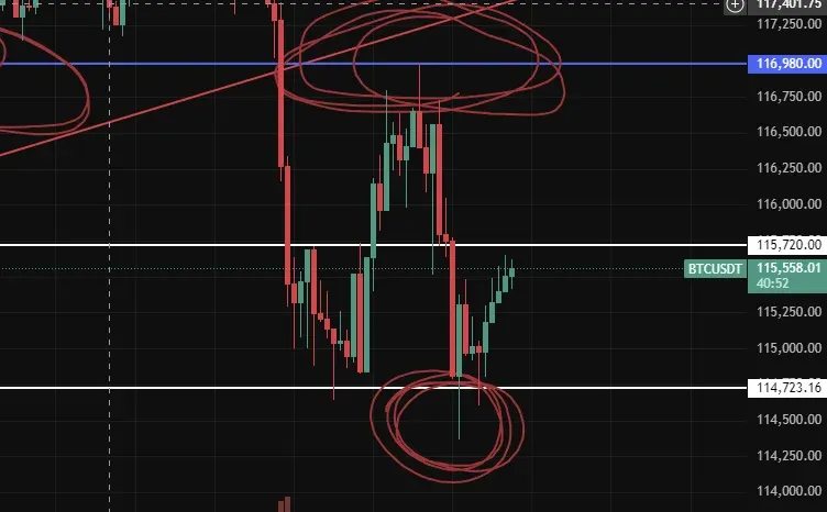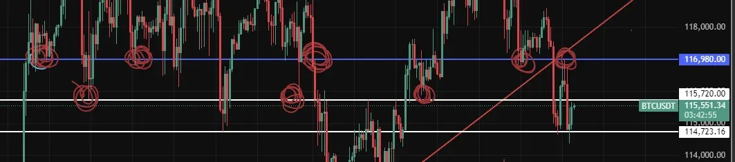 115720까지 다시 상승중인데 저기서 숏포지션을 재진입 하려고 예약주문 걸었는데 정말 한끗차이로 체결이 안됐습니다 ㅠㅠ