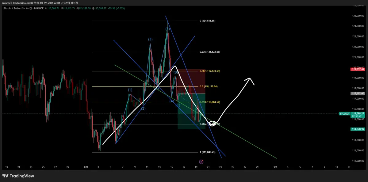 a,c봉을 지나는 지지선과 웻지패턴이 맞물리는 곳에서 상승이 다시 이루워 질것으로 예상하며 상승하는 그림이 나오면 추가 매수하려 함.